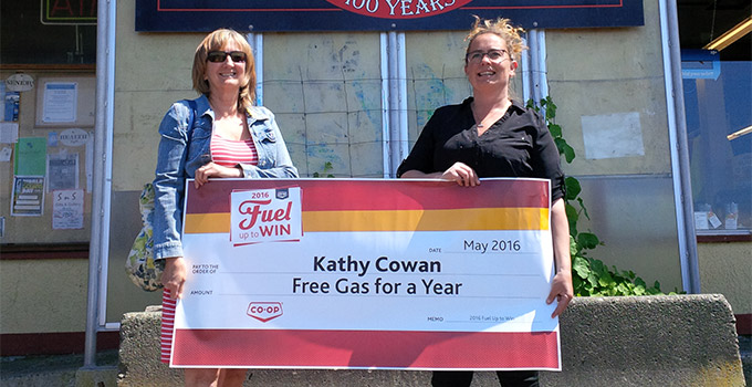 Kathy Cowan of Sointula, B.C., won free gas for a year in this year's Fuel Up to Win contest. Thousands of other Co-op members and customers, some of whom are pictured below, were winners of other great prizes and discounts.